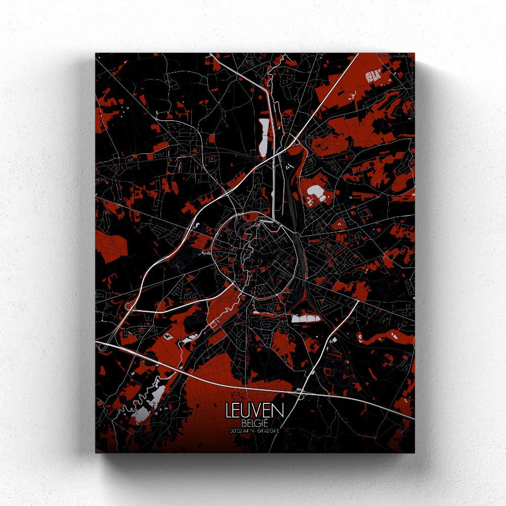 Discover the charming city of Leuven through this stunningly detailed city map, where centuries of history meet the peaceful rhythms of nature. Located along the banks of the River Dijle, Leuven’s landscape is a delightful blend of winding waterways, rolling hills, and lush green spaces, creating a harmonious backdrop for its architectural treasures. From the gentle rise of the Old Market Square (known by locals as the “longest bar in the worldâ€?) to the tranquil sweep of the surrounding parks and forests, the River Dijle winds through the city like a quiet companion, threading its way past centuries-old buildings and providing a reflective mirror to the spires and rooftops above. These spires belong to the magnificent Gothic architecture of Leuven’s churches and university buildings, the most iconic being the impressive Town Hall with its intricate, almost sculptural façade. The map showcases its many greenspaces, including the expansive Kruidtuin (Botanical Garden), which is perfect for a peaceful stroll or a quiet moment of contemplation. The green hills and meadows surrounding the city offer the perfect escape, just a short walk from the bustling heart of Leuven. Even within the urban landscape, parks and tree-lined streets provide refreshing pockets of calm, making this a city where you can always find a place to relax.