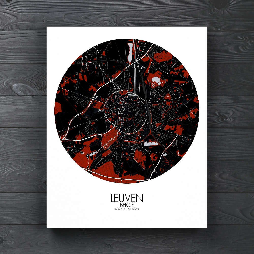 Poster City map of Leuven, Belgium: home to landmarks that tell tales of both medieval grandeur and modern energy.