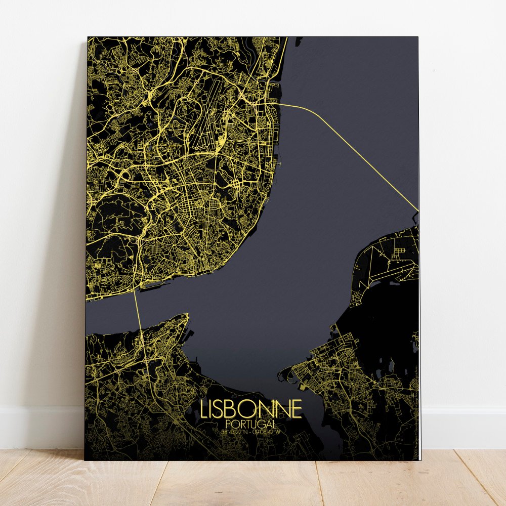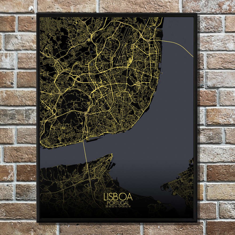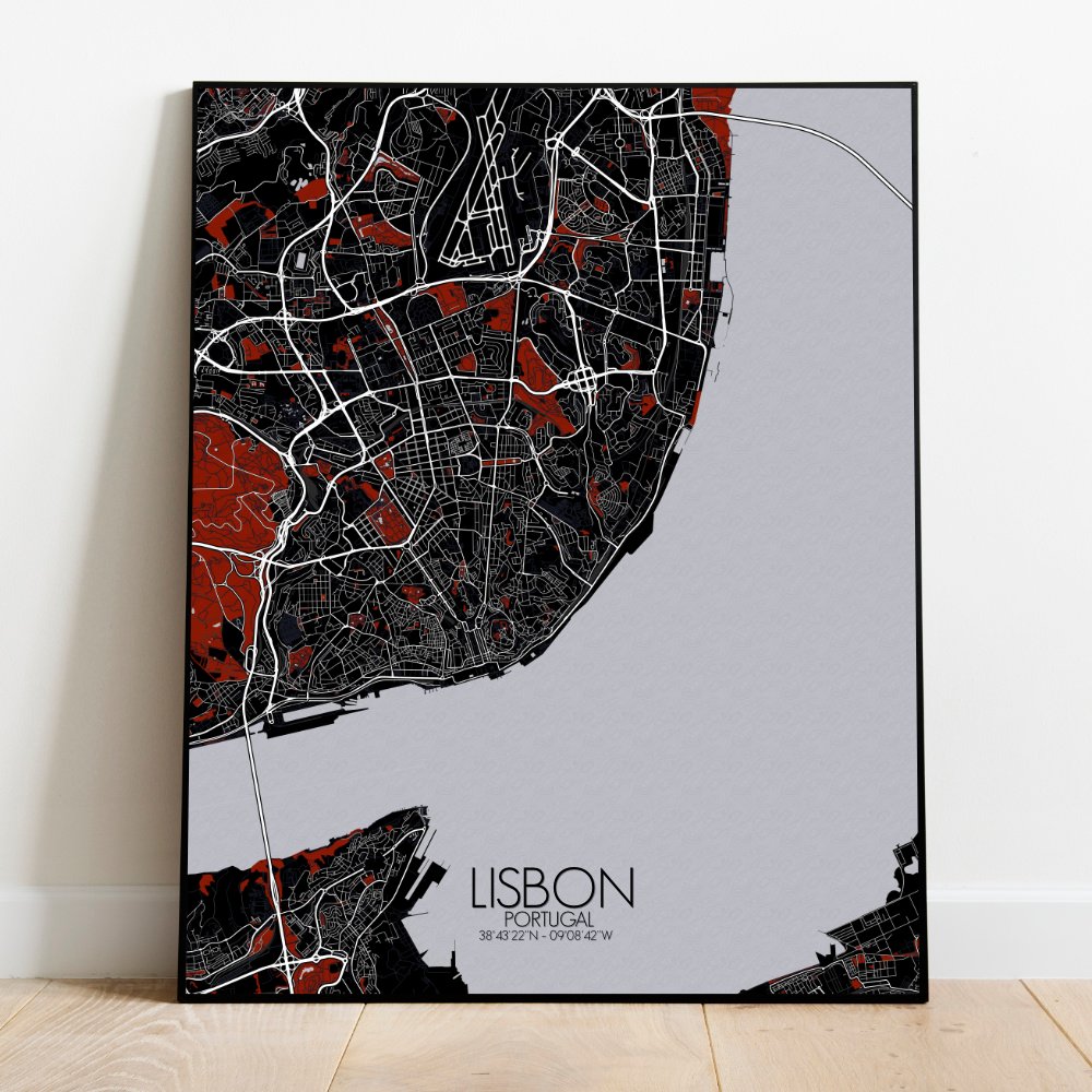Poster City map of Lisbon, Portugal: the city of seven hills, leans gently over the Tagus River like a daydream that forgot to end.