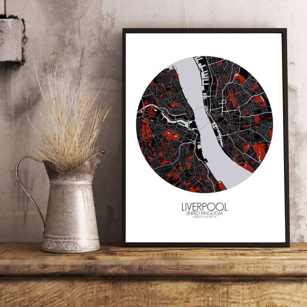 Get this Poster City Map print of Liverpool, UK, as a wall map. You can select the size, color or pattern for your map !