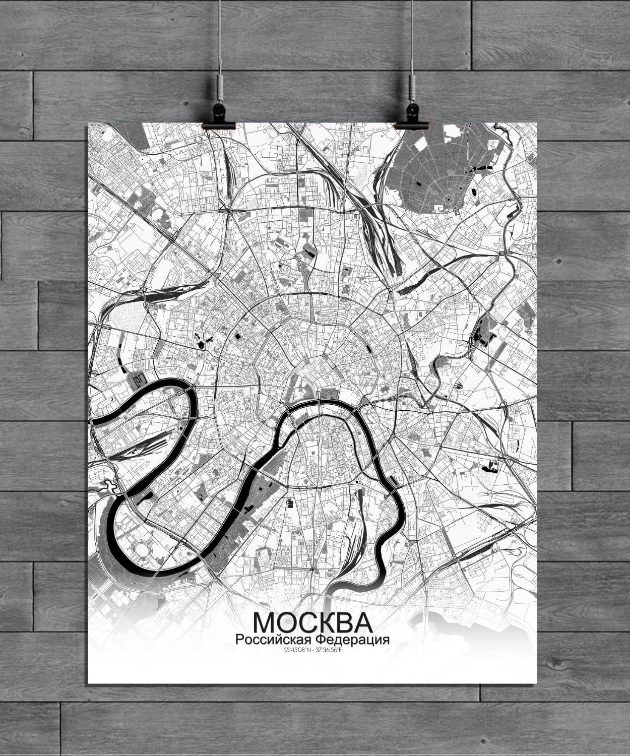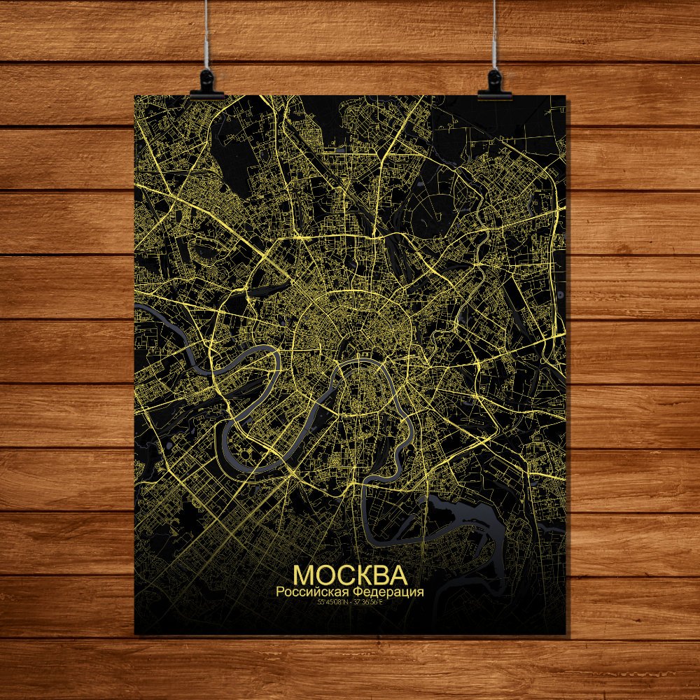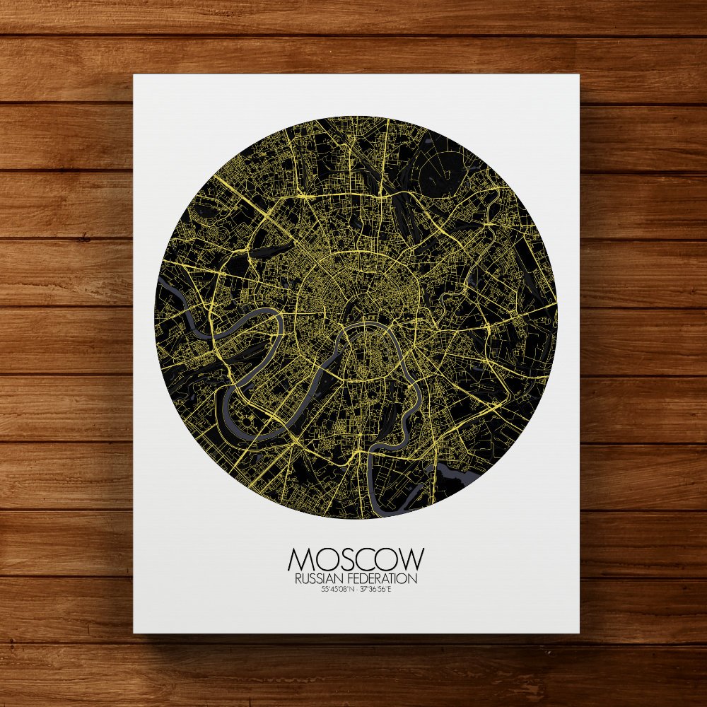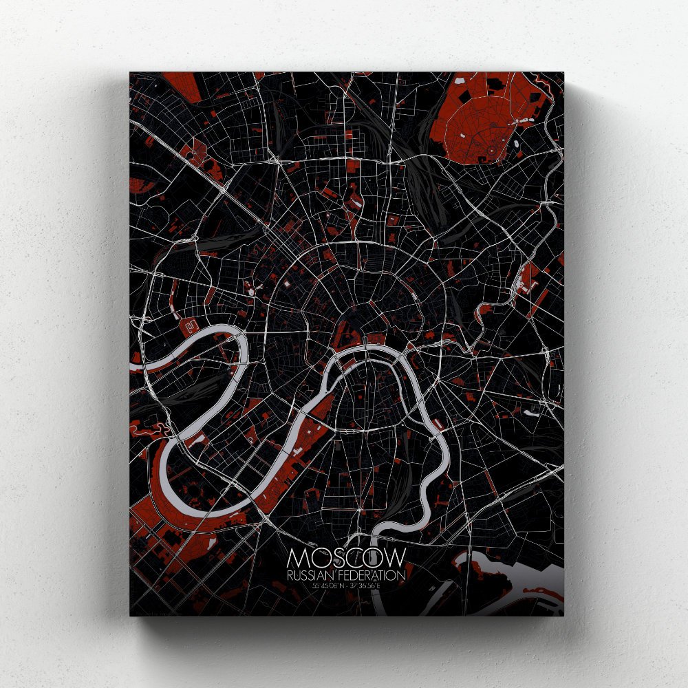 Poster City map of Moscow, Russia: Nestled along the banks of the winding Moskva River, the city of Moscow stretches out in a pattern that is anything but ordinary.