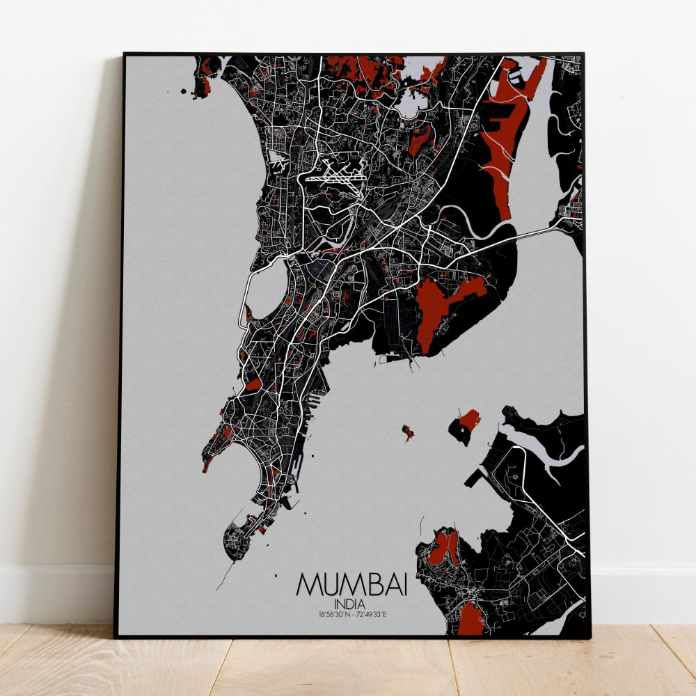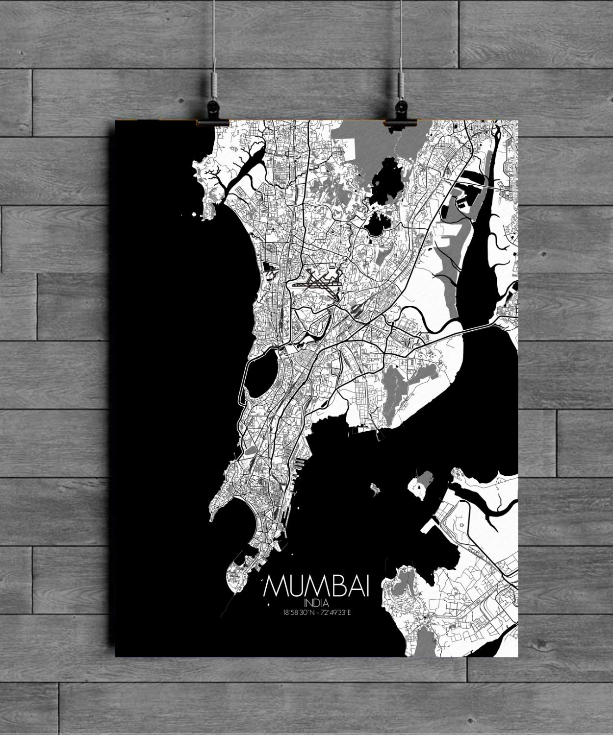 Poster City map of Mumbai, India: a city of monsoons and movies, of dreams, dabbawalas, and delightful restlessness.