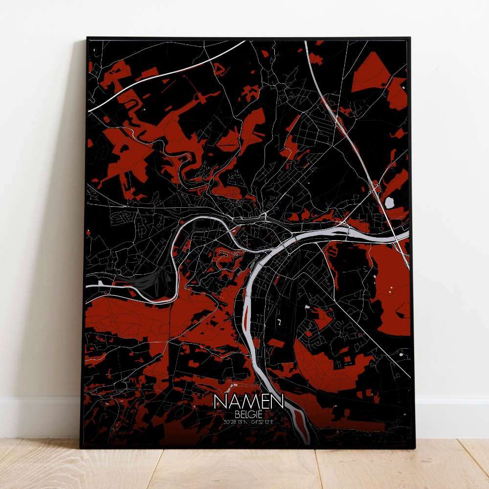 Poster City map of Namur, Belgium: The city’s ancient walls and towers, some still standing, hint at tales of battles and conquests that shaped Namur’s strategic importance through the ages.
