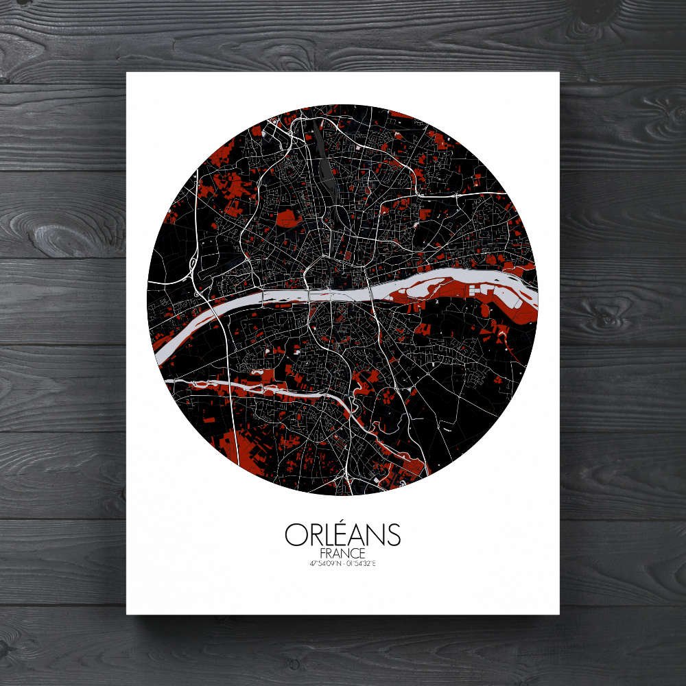 City Map Poster of Orléans, France: a timeless allure with Mapospheres’ beautiful wall map that seamlessly combines cartography and design.