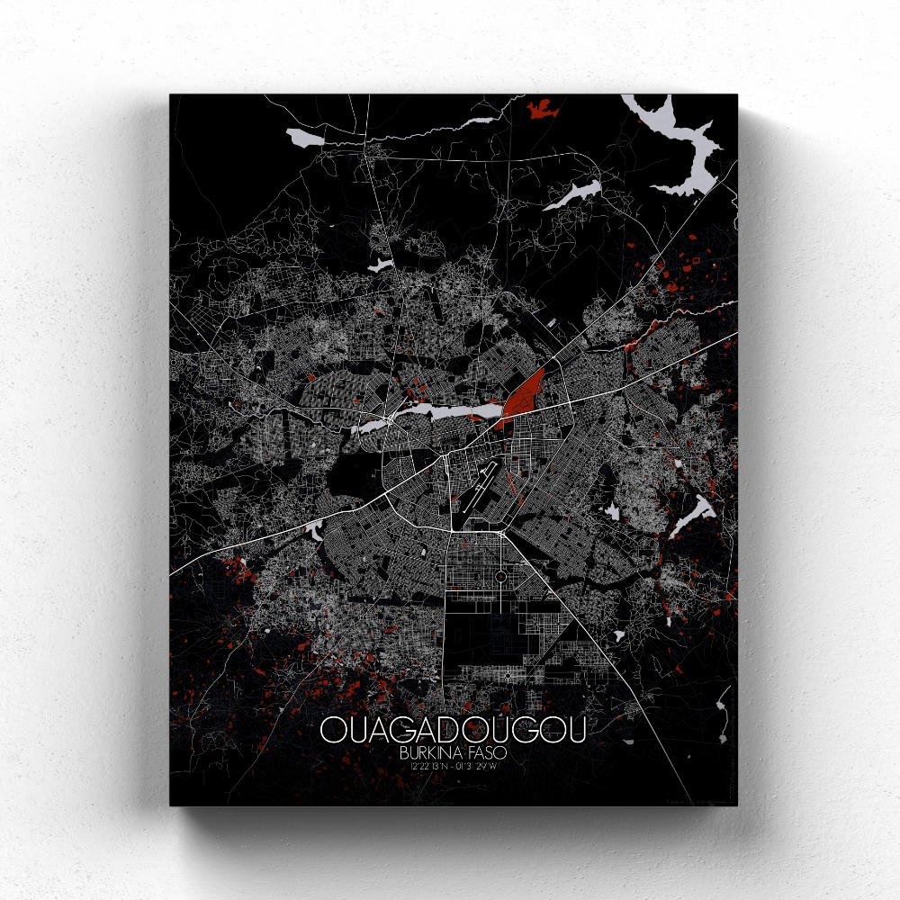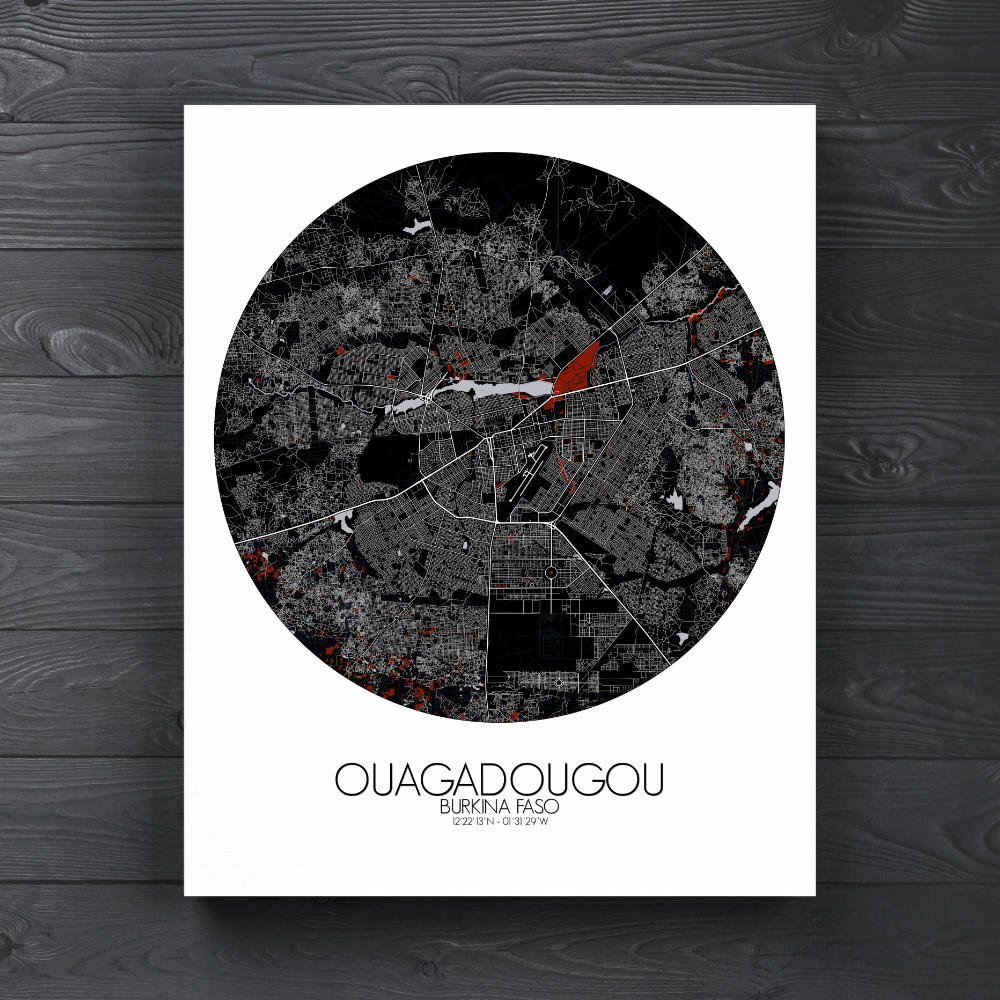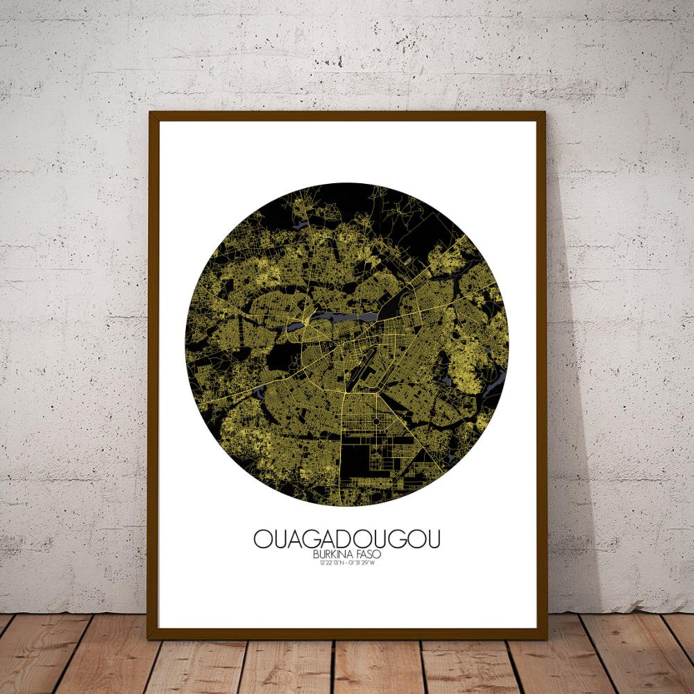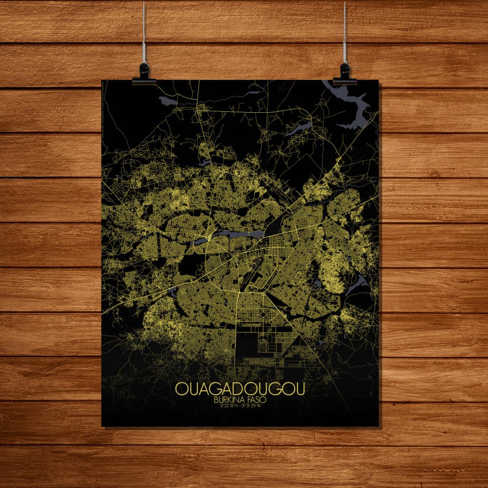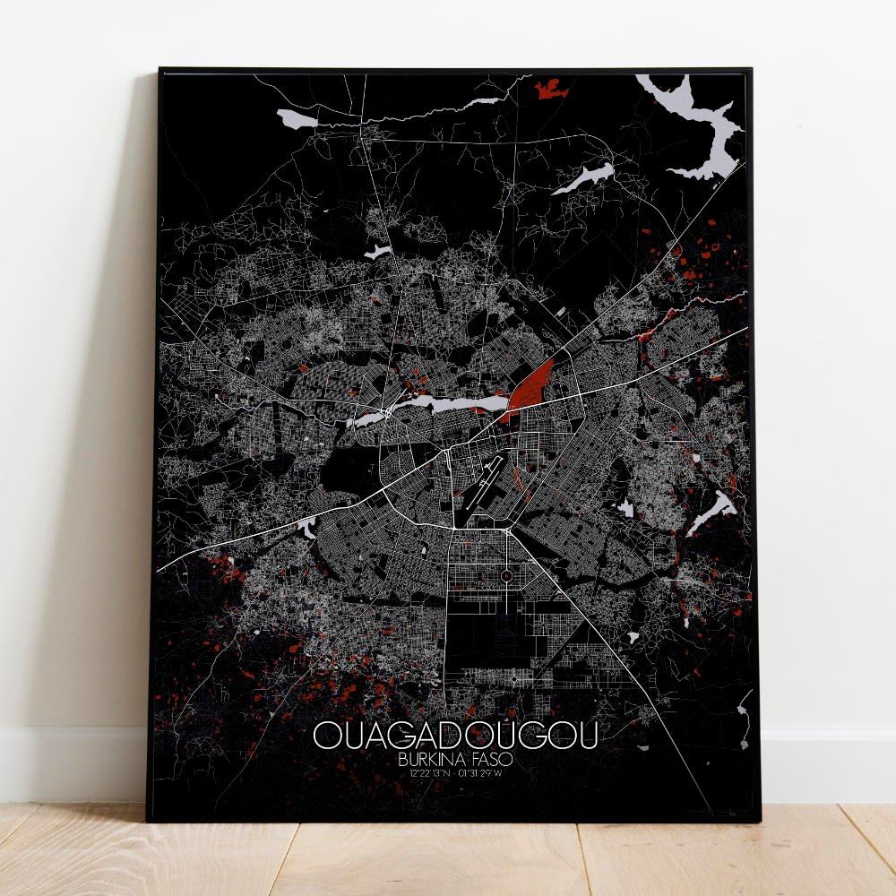 Poster City map of Ouagadougou, Burkina Faso: This map of Ouagadougou is a unique window into a city where modern life and tradition coexist harmoniously.