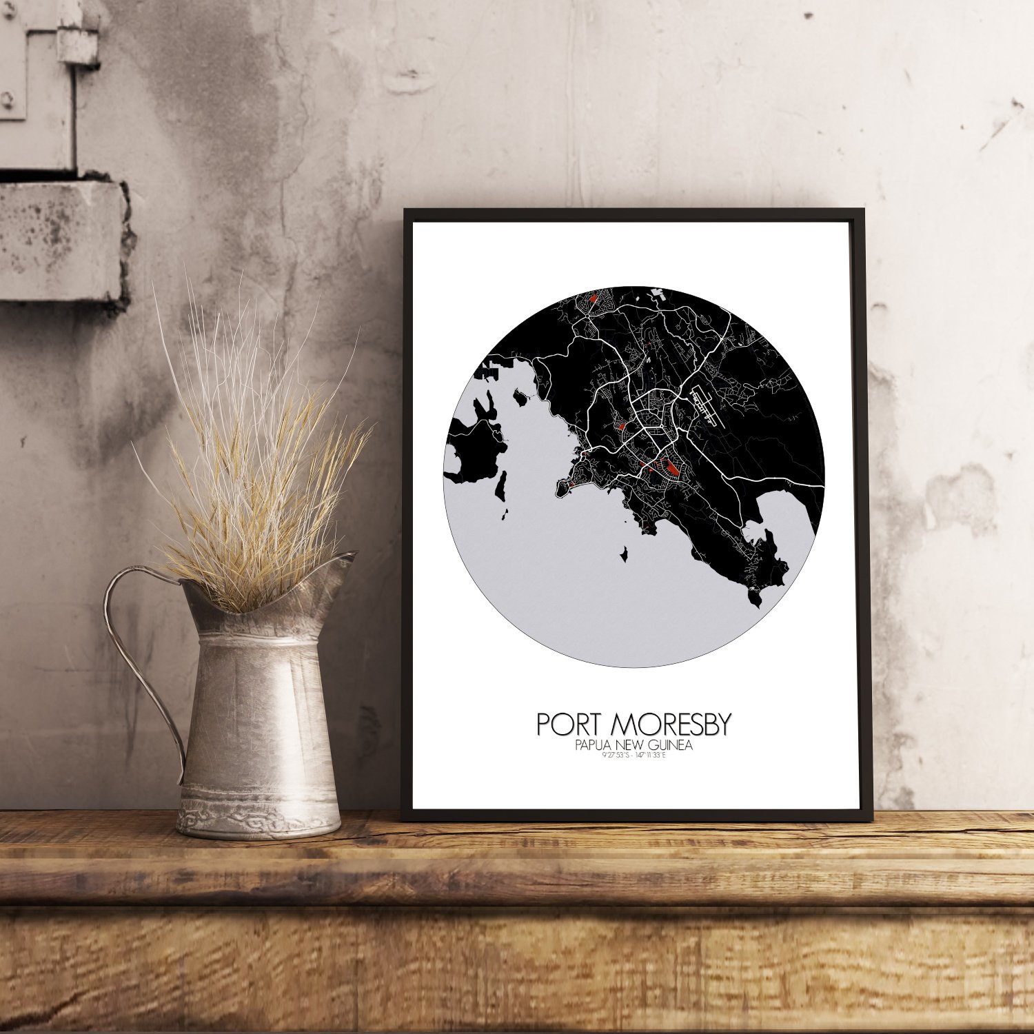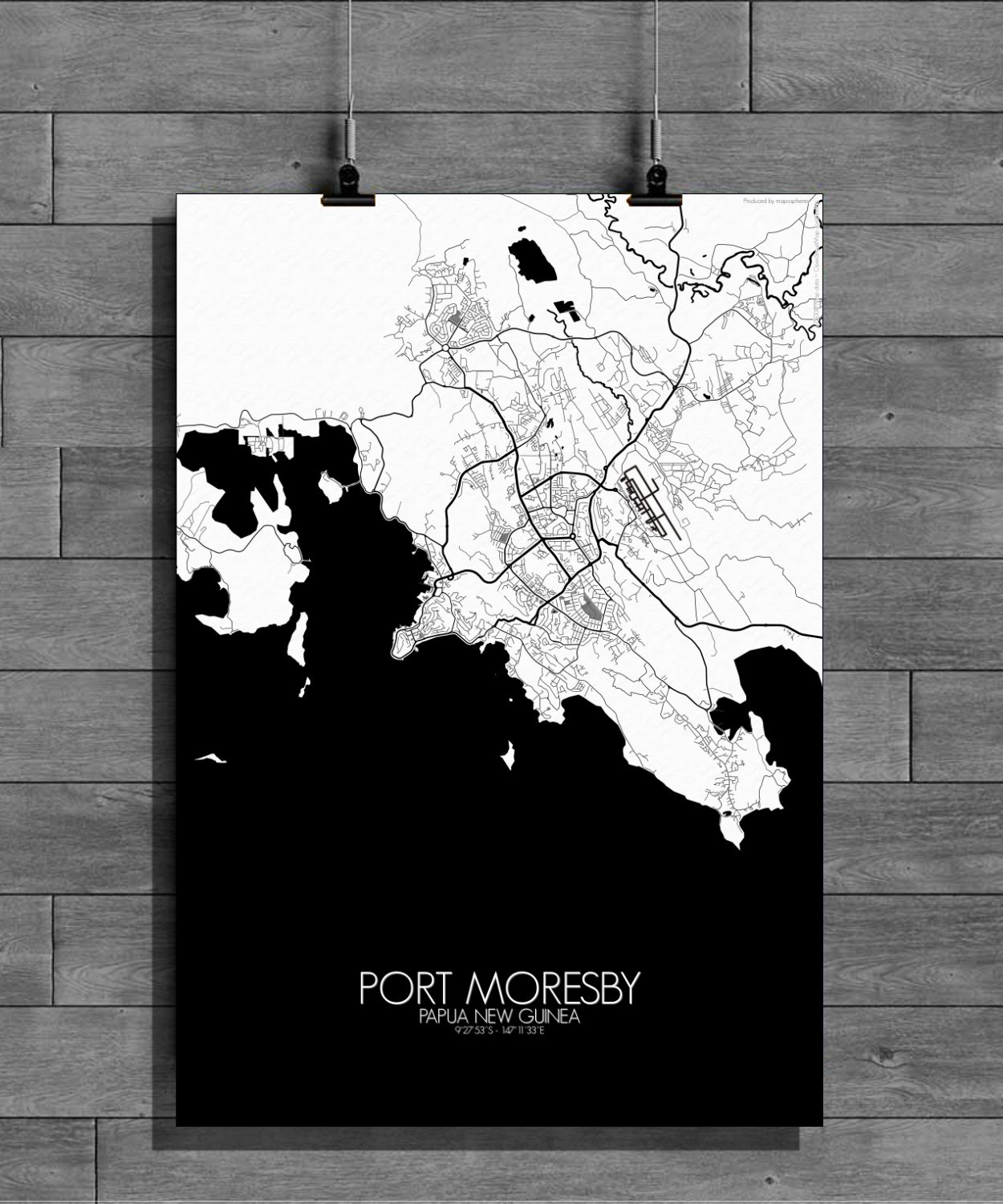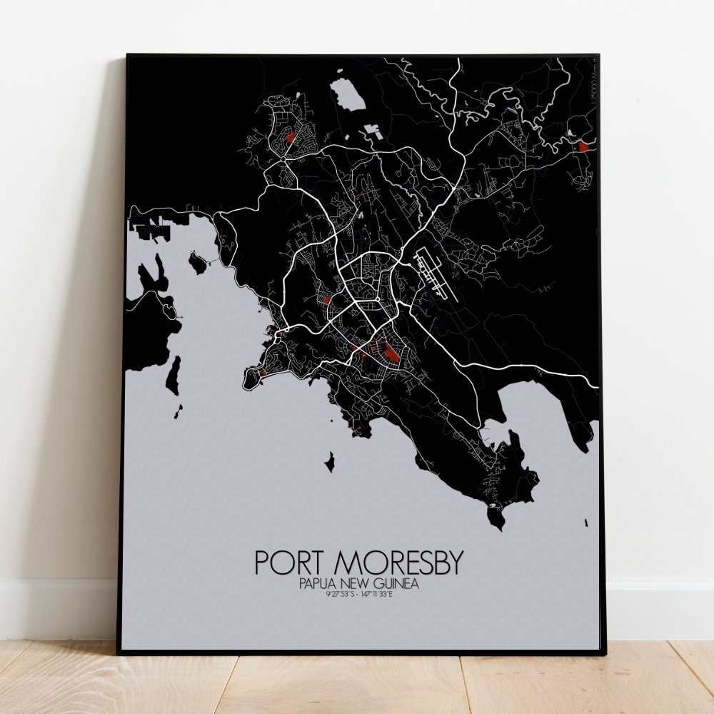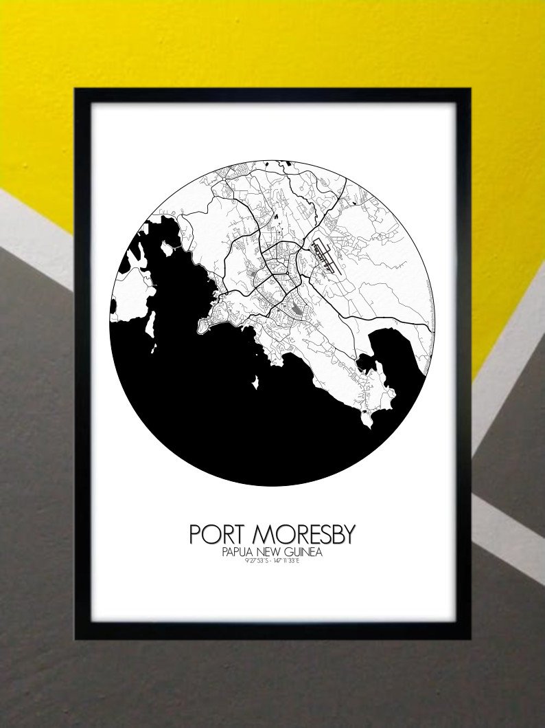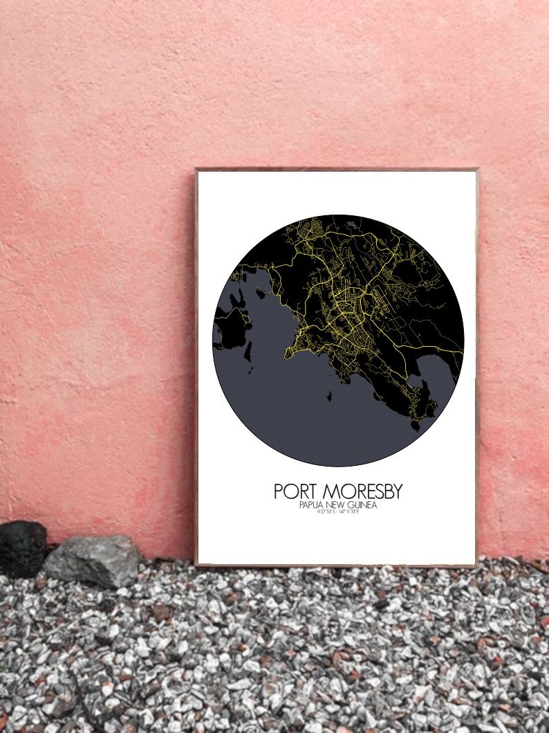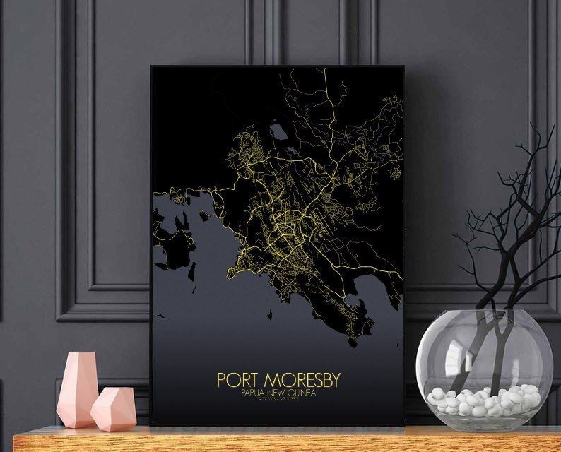 Get this Poster City Map print of Port Moresby, Papua New Guinea, as a wall map. You can select the size, color or pattern for your map !
