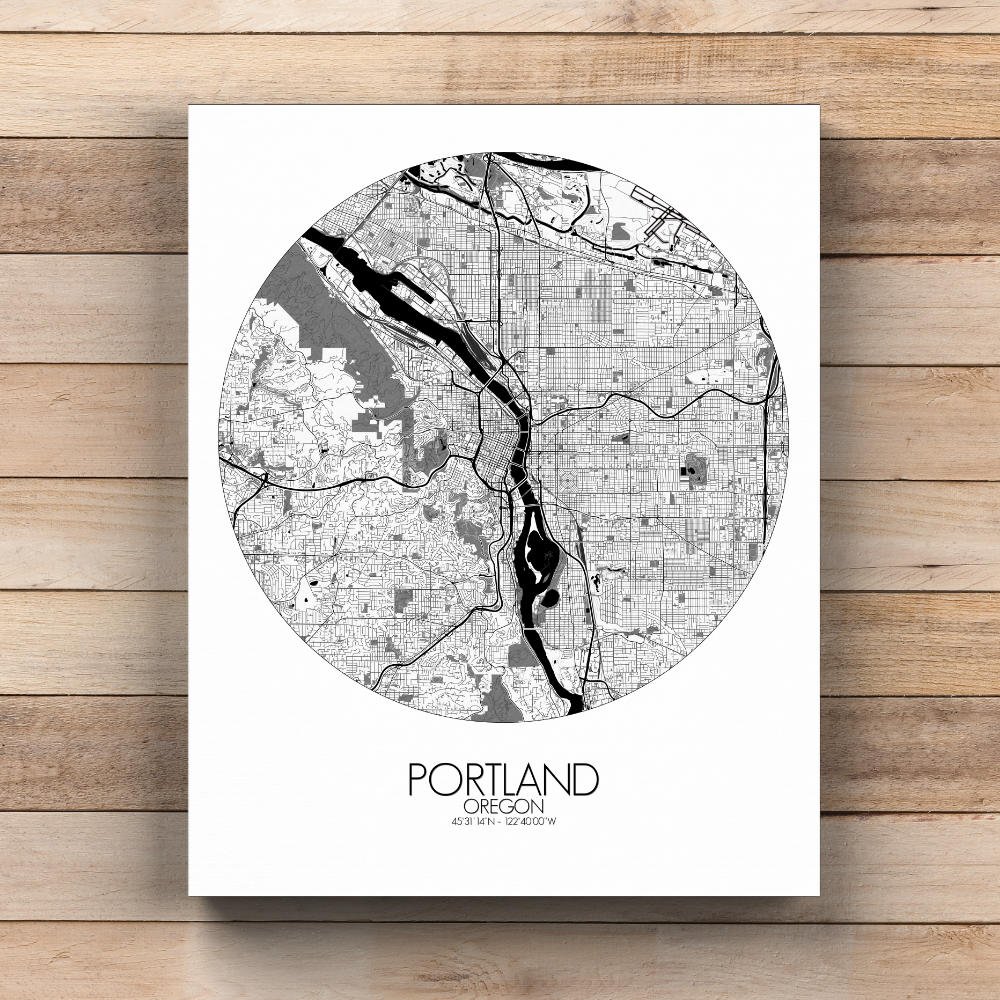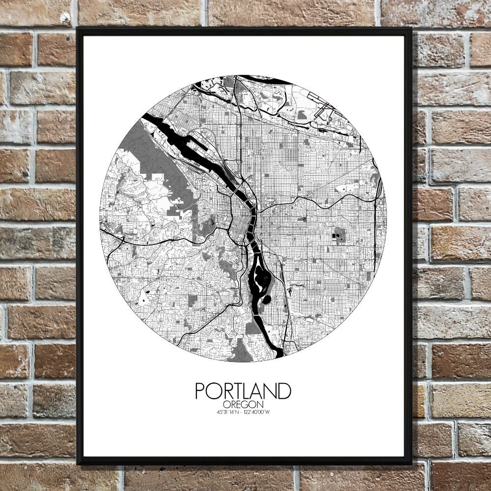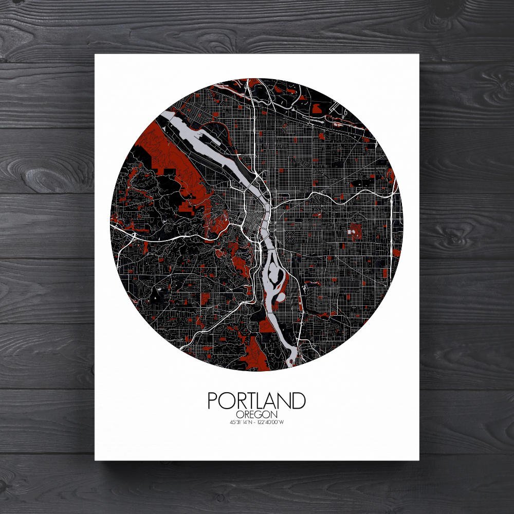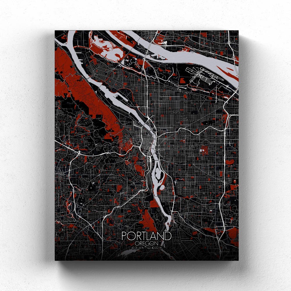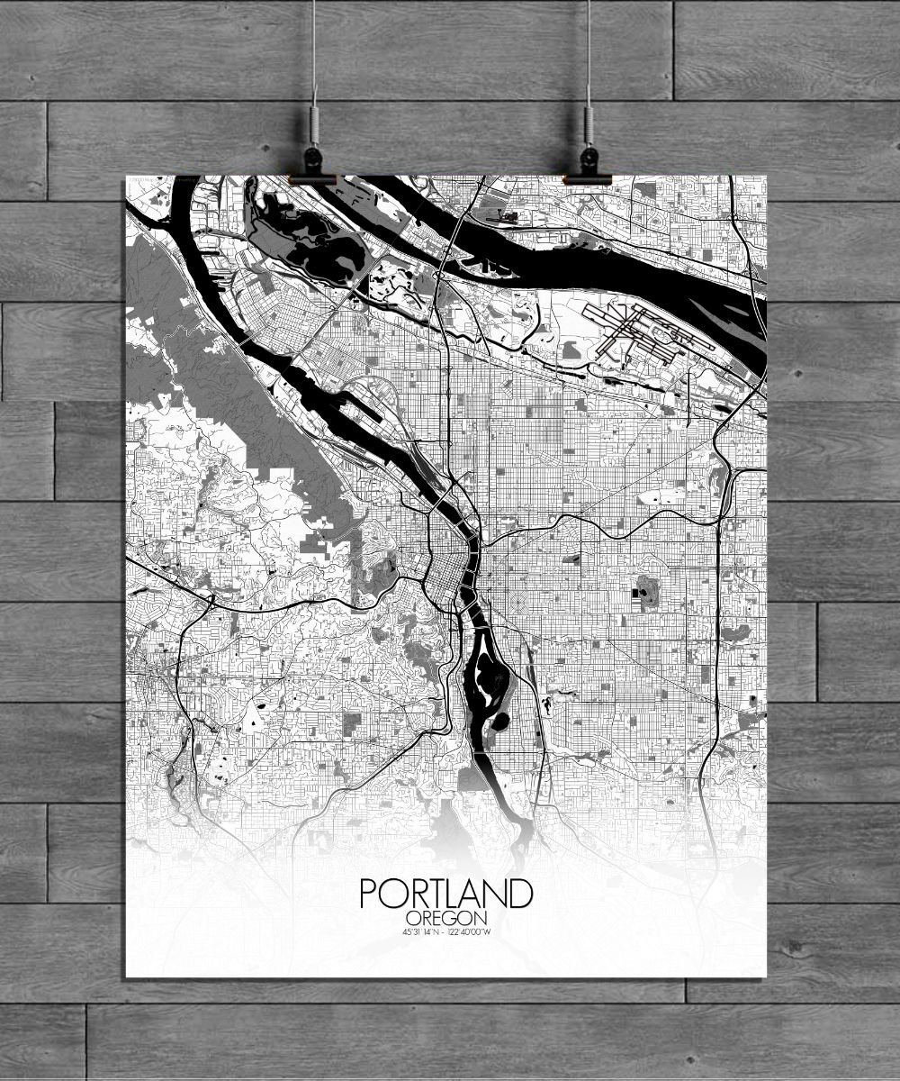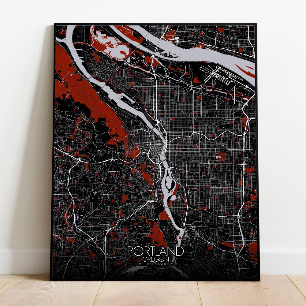 The map captures the unique geography of this Pacific Northwest city, nestled between the mighty Columbia River to the north and the Willamette River cutting through the heart of the city. These two rivers shape not only the land but the spirit of Portland, with bridges like the St. Johns and Hawthorne connecting neighborhoods in a city that’s as much about water as it is about land. The city’s terrain is defined by its rolling hills and sprawling greenspaces, with the West Hills offering a stunning vantage point over the city. From here, you can almost imagine the pioneers of the 1800s, following the Oregon Trail, gazing out at the land they had just discovered. The map highlights the lush expanses of Forest Park, one of the largest urban forests in the U.S., and the colorful rows of gardens and parks, which make Portland a true “City of Roses.” There’s even Washington Park, home to the Portland Japanese Garden, a peaceful oasis that’s as much a work of art as the city itself.