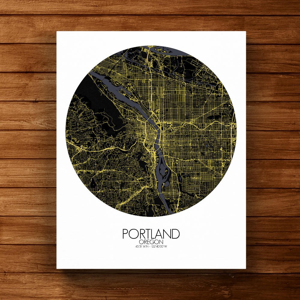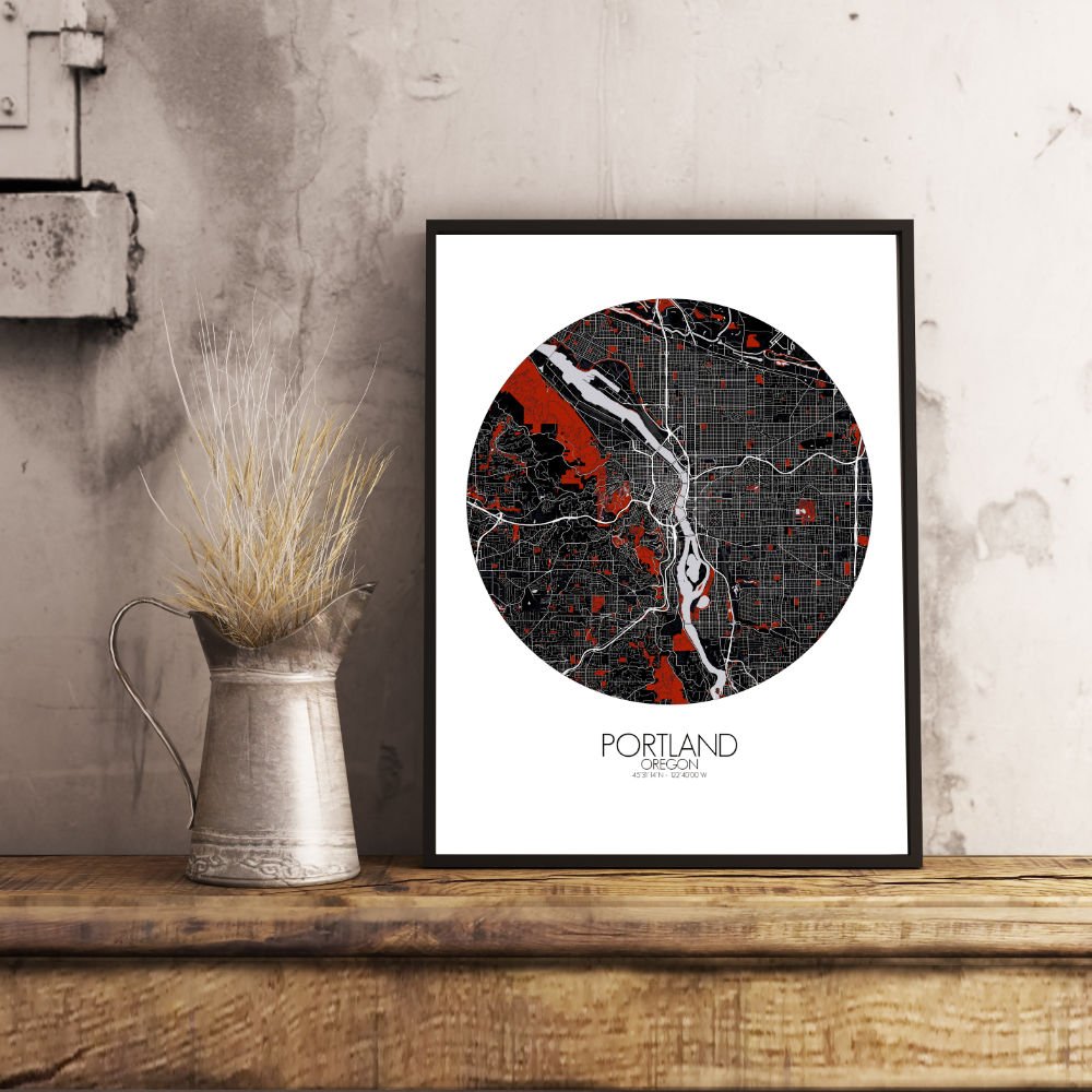 Poster City map of Portland, Oregon: this map paints a picture of a city where the outdoors never feel far away, and where the past and present blend effortlessly into the landscape.