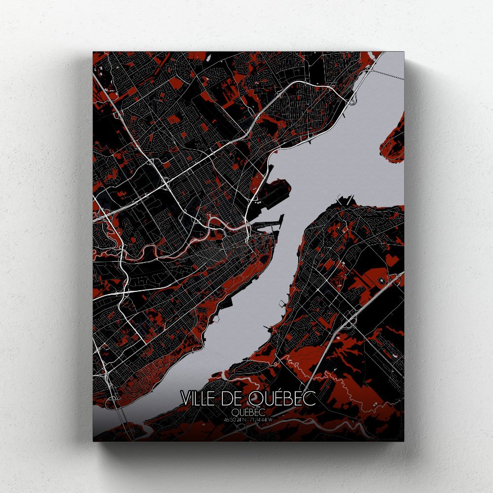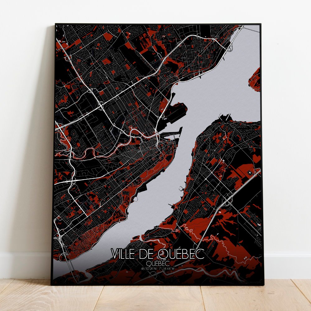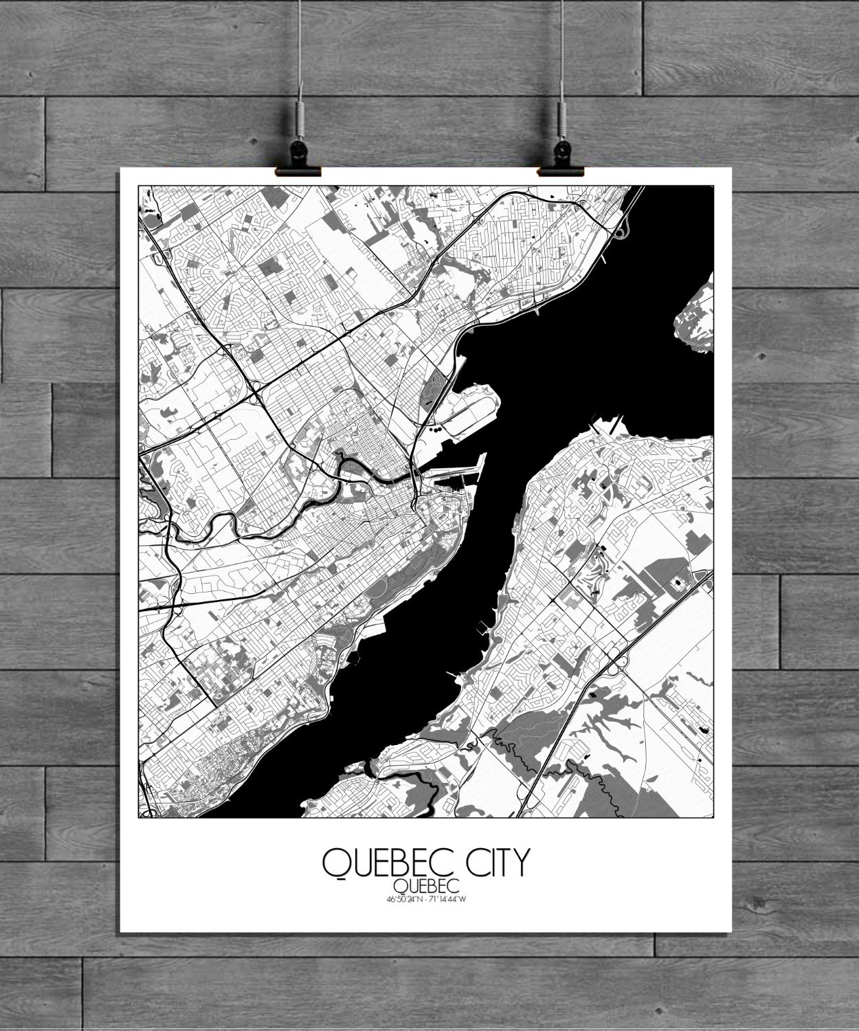 Poster City map of Quebec City, Canada: This map does more than chart streets and slopes. It draws you into the city’s unique character—its steep stairways, riverside promenades, and hilltop views. It’s geography as poetry, with just enough topography to keep it grounded.