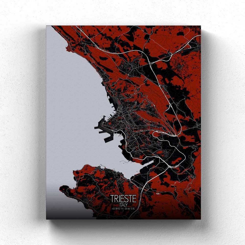 Located at the northeastern tip of Italy, where the Mediterranean meets the Alps, Trieste offers a stunning juxtaposition of coastal charm and alpine grandeur—an inspiring mix that this map brings to life with every detail. Trieste’s geography is as dramatic as it is beautiful. The map shows how the city lies at the head of the Gulf of Trieste, its coastline etched with rocky promontories and sheltered coves, leading the way to the sparkling Adriatic Sea. The rugged cliffs and sweeping hillsides surrounding the city add a sense of majesty, with the Karst Plateau looming just to the north, its steep slopes dotted with caves and vineyards. The city’s elevated position offers breathtaking views, and the map elegantly captures how Trieste climbs up from the sea, making the land feel both expansive and intimate, as if every corner holds a new discovery. The lush, terraced gardens of the Villa Revoltella and the serene green expanse of the Parco di San Giovanni provide refreshing contrasts to the city’s bustling squares and historic streets. The nearby Miramare Park, surrounding the fairy-tale Miramare Castle, is another highlight—its vibrant pathways winding along the cliffside, offering sweeping views of the sea below, making it a favorite spot for both locals and visitors seeking a touch of nature and history in one. Historically, Trieste has always been a crossroads and the map draws attention to landmarks that reflect this rich tapestry. The imposing Piazza Unità d’Italia, one of Europe’s largest sea-facing squares, anchors the city’s heart. The neoclassical grandeur of the buildings surrounding it stands as a testament to Trieste’s Austro-Hungarian past, a time when the city was a thriving port and cultural hub. Just a short stroll away, the Trieste Cathedral of San Giusto rises proudly on the hill, its ancient mosaics and panoramic views reminding visitors of the city’s storied history.