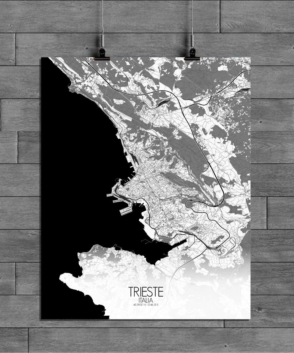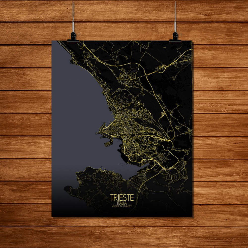Poster City map of Trieste, Italy: a melting pot of Italian, Slavic, Austrian, and Jewish cultures. There’s a quiet mystery to the city that reveals itself slowly, like a good novel.