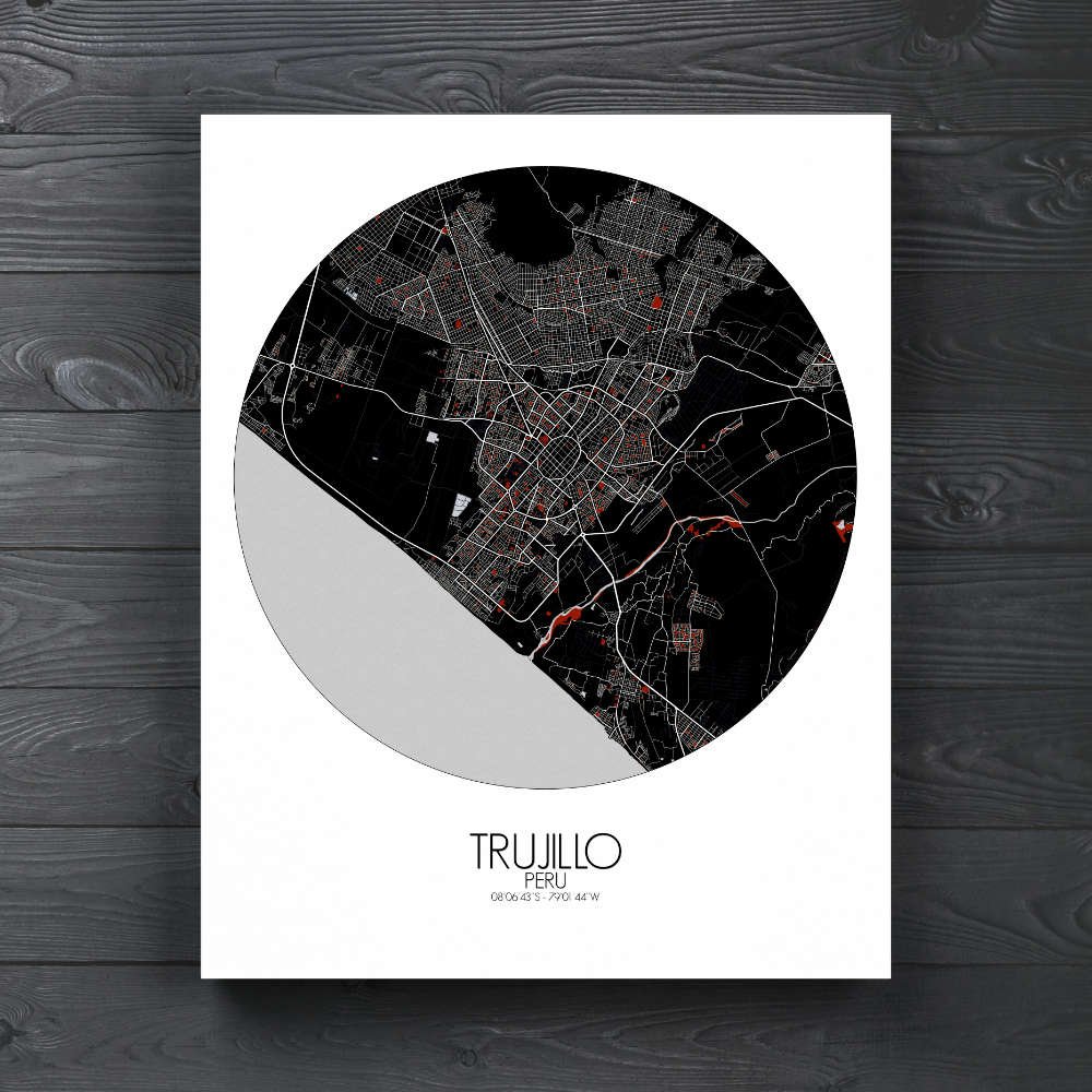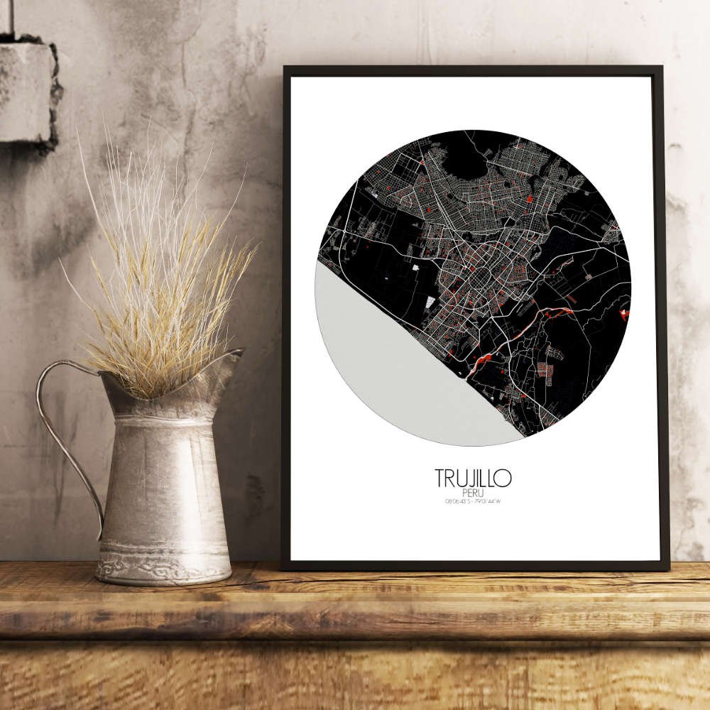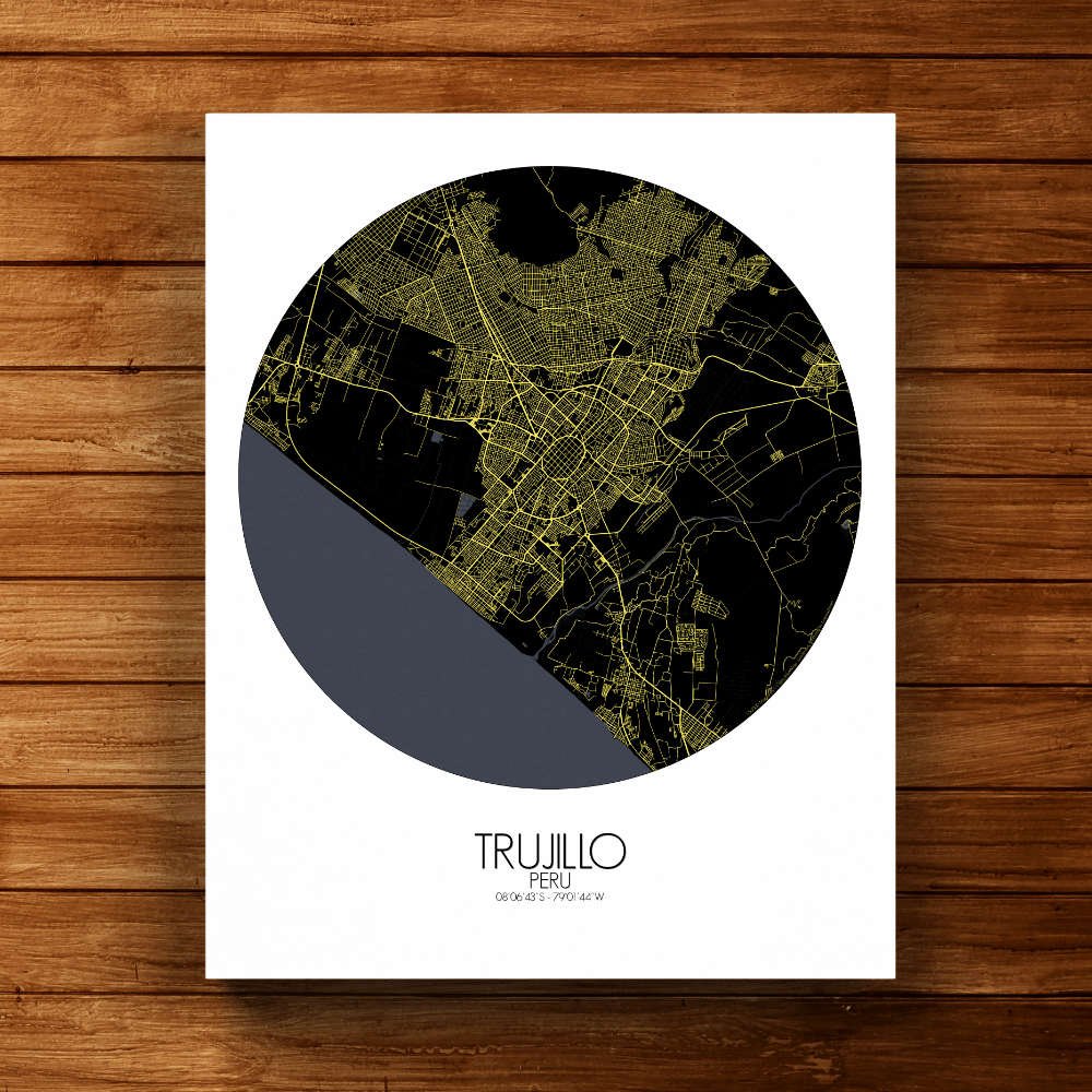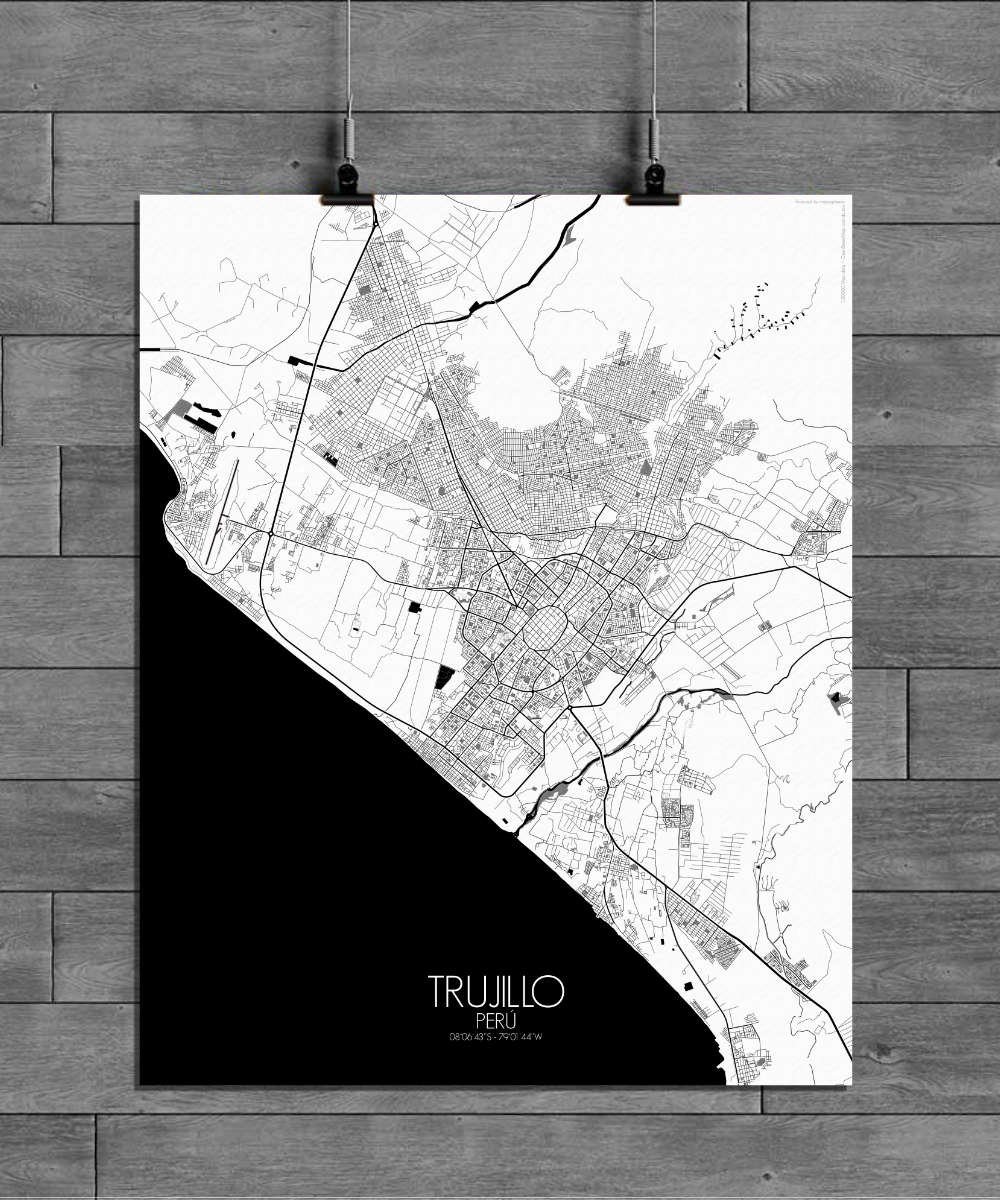 Get this Poster City Map print of Trujillo, Peru, as a wall map. You can select the size, color or pattern for your map !
