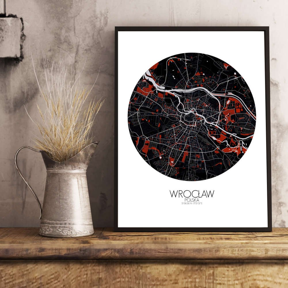 Our map brings to life the gentle undulations of its landscape, from the serene, low-lying areas to the subtly rising terrains that hint at ancient tales of resilience and renewal. The sprawling Szczytnicki Park, with its famous Japanese Garden, offers a peaceful retreat amidst the urban mess. The verdant expanses of the Botanical Garden, a living museum of flora, promise a visual feast of nature’s bounty. Each greenspace is meticulously marked, inviting you to imagine leisurely strolls and picnics under the Polish sun. No map of Wroclaw would be complete without its iconic landmarks. The grand Market Square, or Rynek, stands at the heart of the city, a vibrant nexus of culture and commerce since medieval times. The Gothic splendor of St. Elizabeth’s Church, with its towering spires, adds a touch of majesty. Look closer, and you’ll spot the whimsical dwarfs—Wroclaw’s mischievous krasnale—hidden in plain sight, bringing a touch of fairy-tale charm and humor to the urban landscape. Wroclaw’s rivers and islands are gracefully rendered, each curve of the Odra River and each bridge—whether the stately Grunwaldzki or the historic Tumski—invite you to explore the city’s rich history and its enduring romance with water. The islands, particularly Ostrów Tumski, with its cathedral and cobbled streets, offer a glimpse into the city’s ancient heart.