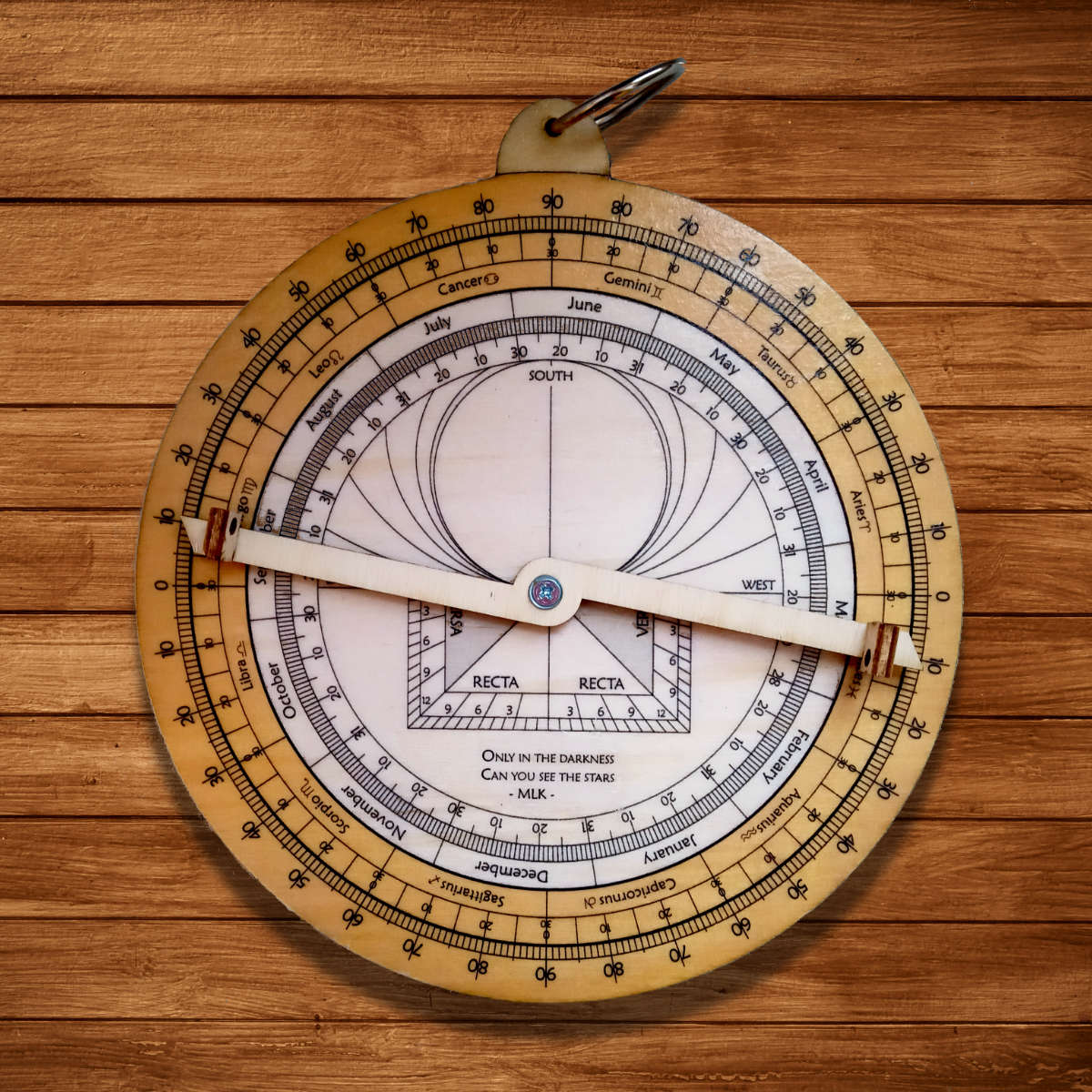 Véritables ordinateurs utilisés depuis des siècles, ces astrolabes en bois peuvent être manipulées par chacun d'entre nous pour lire et anticiper la position des étoiles, ils peuvent servir de montre, de boussole, ou même de téléscope... Tout cela, et plus encore, entre vos mains !