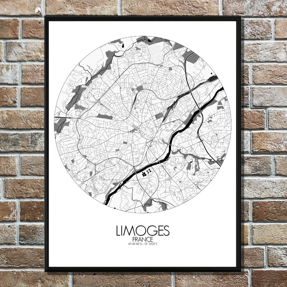 Poster City map de Limoges, France : une fenêtre sur une ville façonnée par la terre, le temps et une bonne dose de pluie.